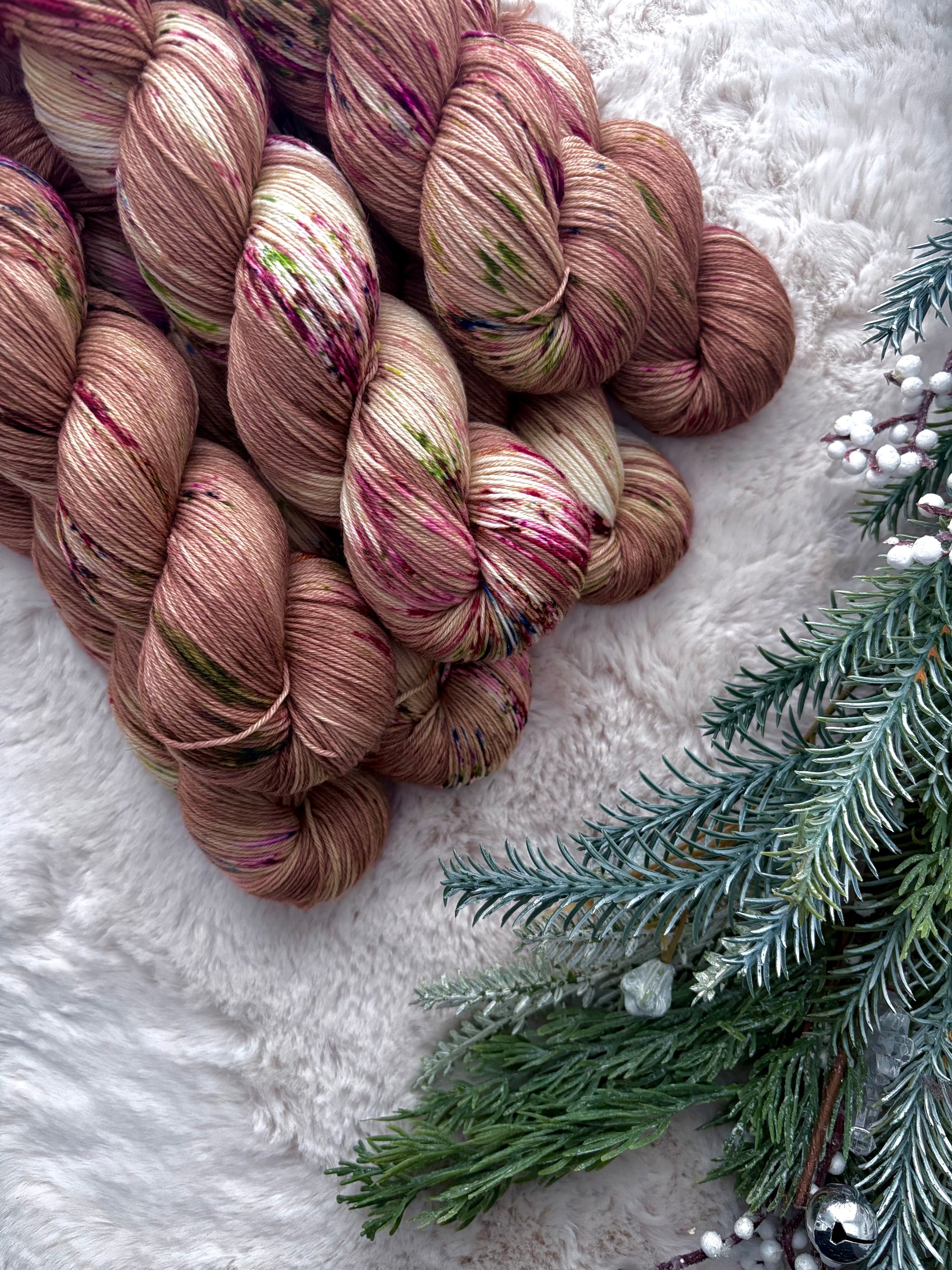 merino dk was chosen simply because of how incredibly soft it is while having a tight twist to maintain durability, I can't even tell you how obsessed I am with this base. Its great for any projects from next to skin wear or shawls, socks. Everything really.