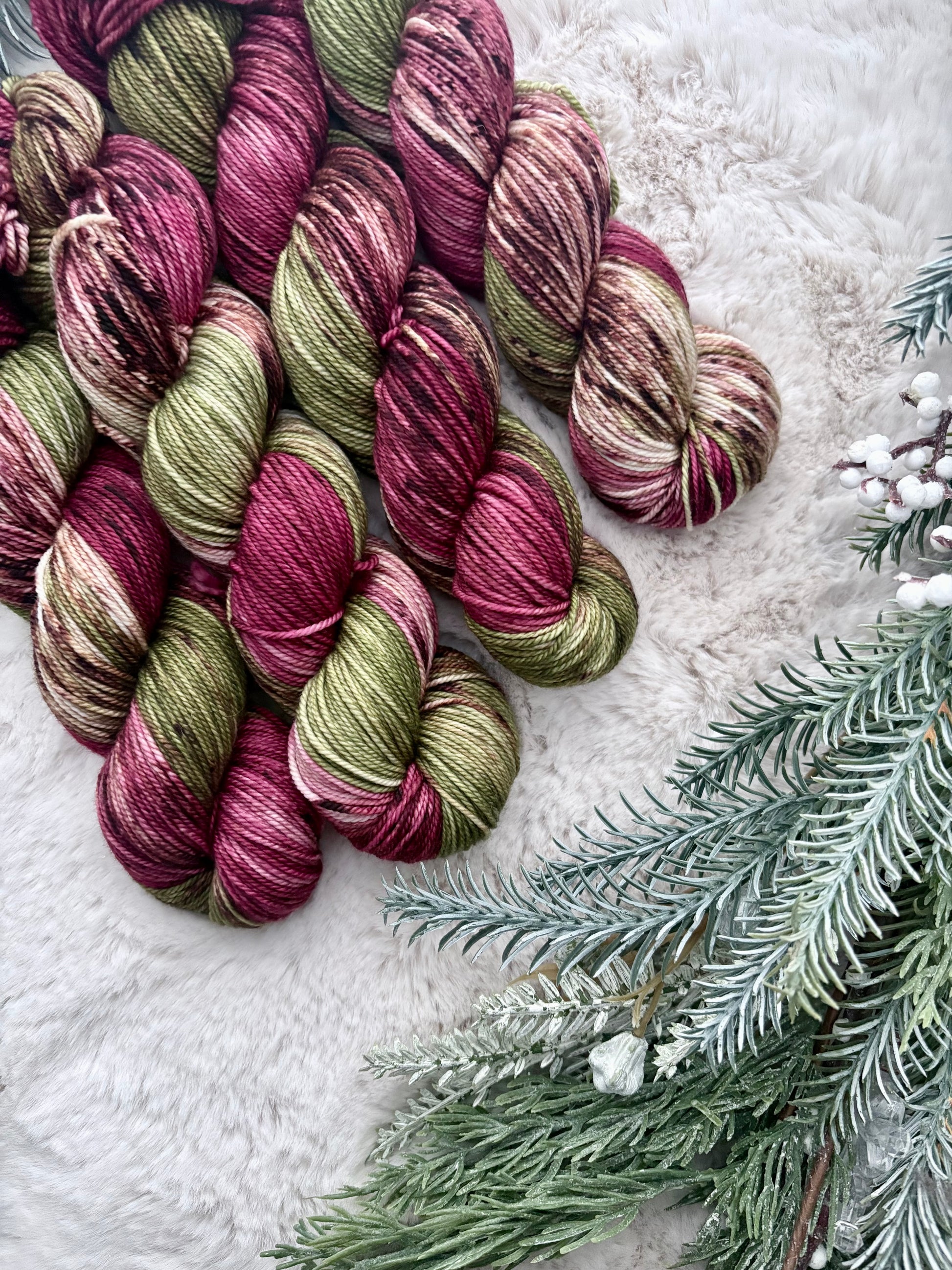 merino dk was chosen simply because of how incredibly soft it is while having a tight twist to maintain durability, I can't even tell you how obsessed I am with this base. Its great for any projects from next to skin wear or shawls, socks. Everything really.