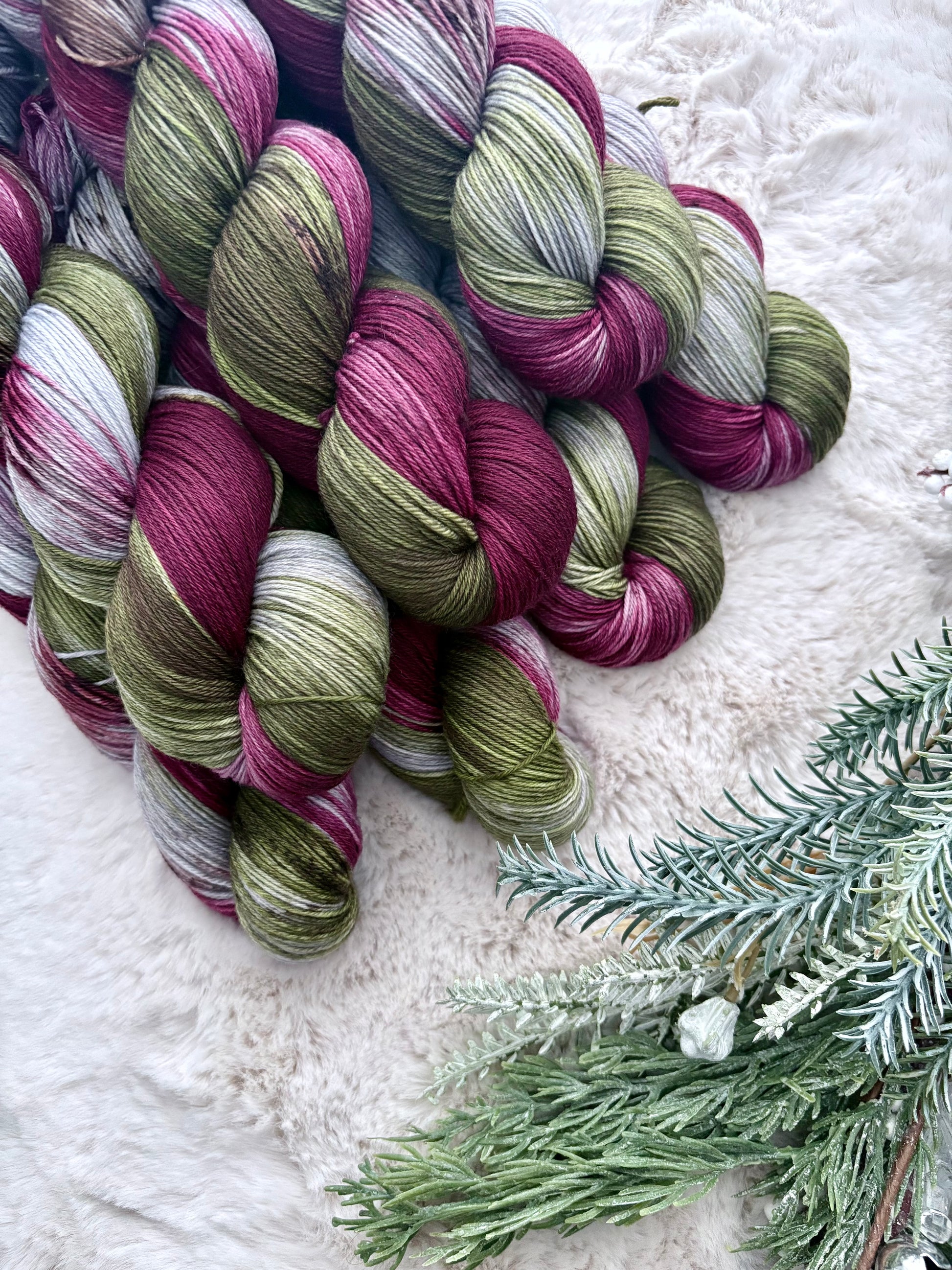 merino dk was chosen simply because of how incredibly soft it is while having a tight twist to maintain durability, I can't even tell you how obsessed I am with this base. Its great for any projects from next to skin wear or shawls, socks. Everything really.
