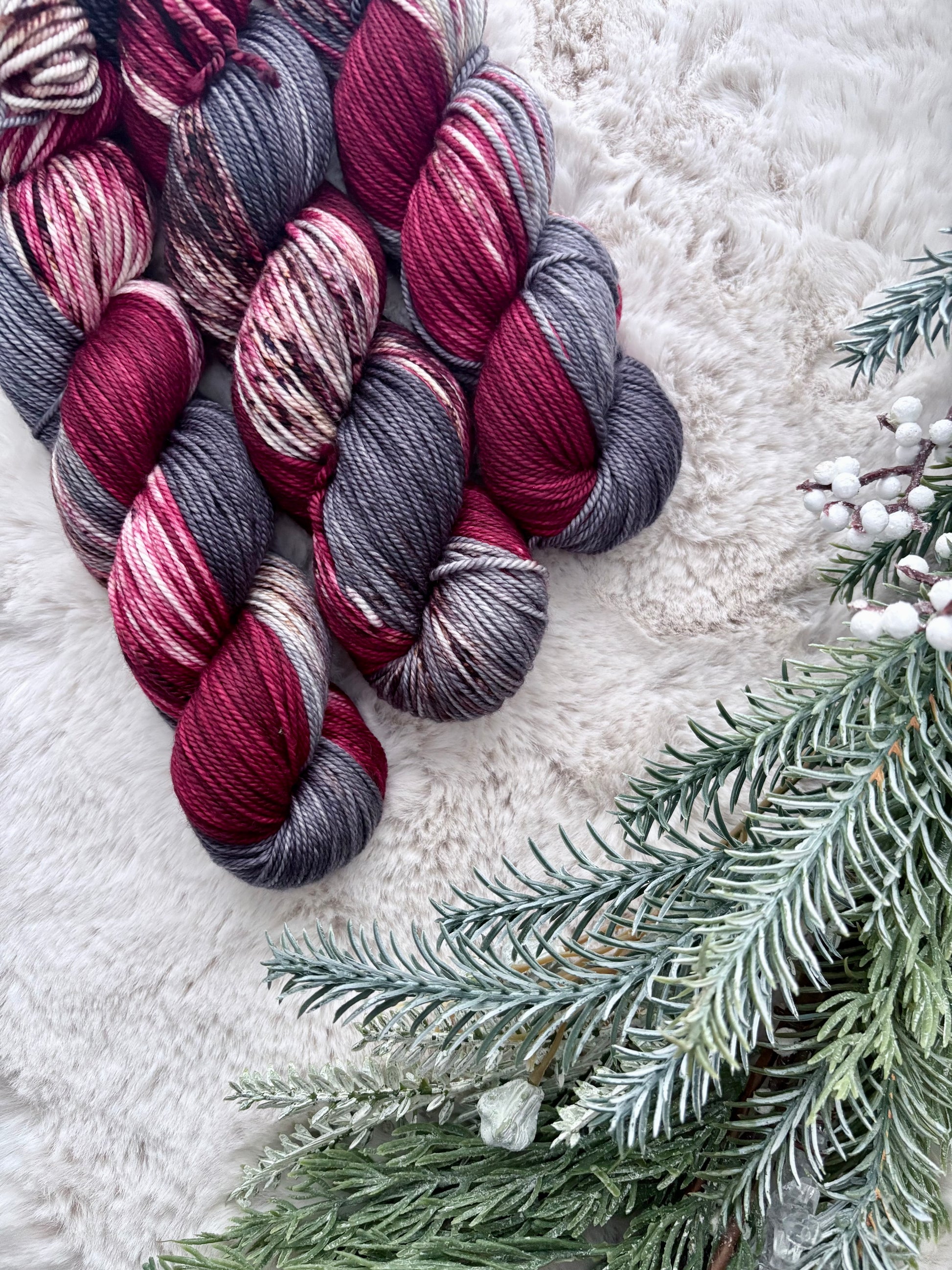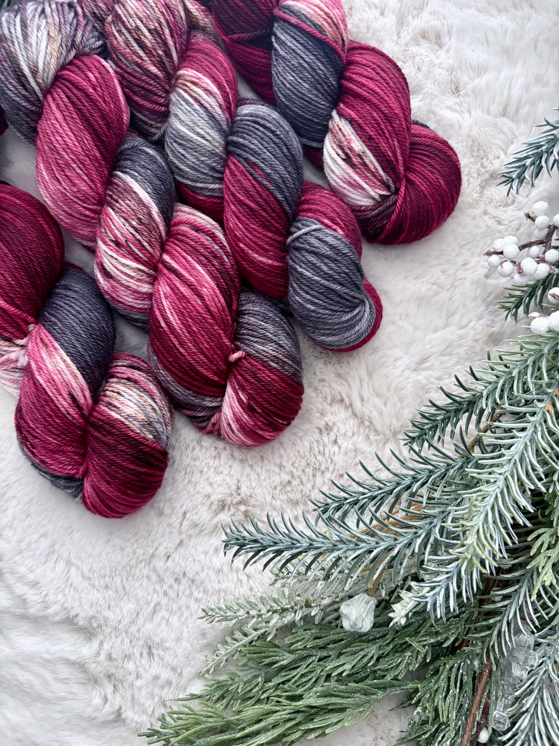 merino dk was chosen simply because of how incredibly soft it is while having a tight twist to maintain durability, I can't even tell you how obsessed I am with this base. Its great for any projects from next to skin wear or shawls, socks. Everything really.