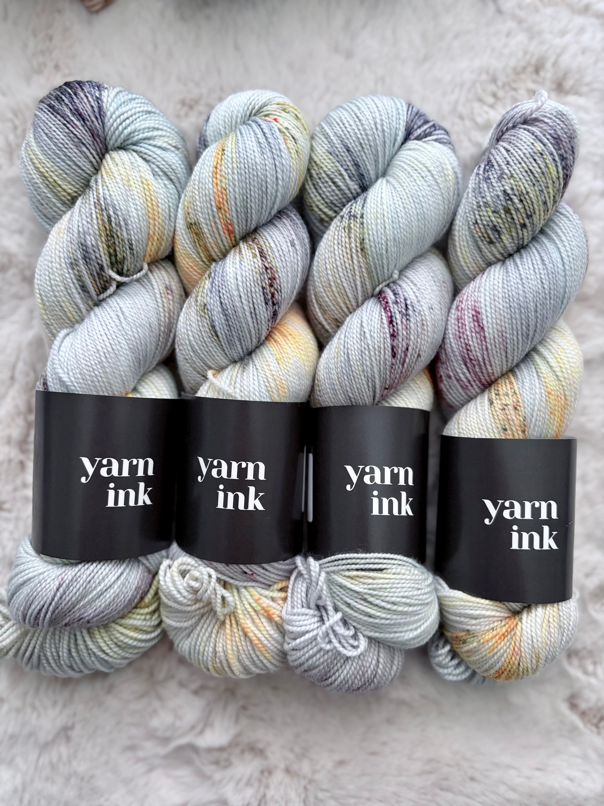 merino dk was chosen simply because of how incredibly soft it is while having a tight twist to maintain durability, I can't even tell you how obsessed I am with this base. Its great for any projects from next to skin wear or shawls, socks. Everything really.