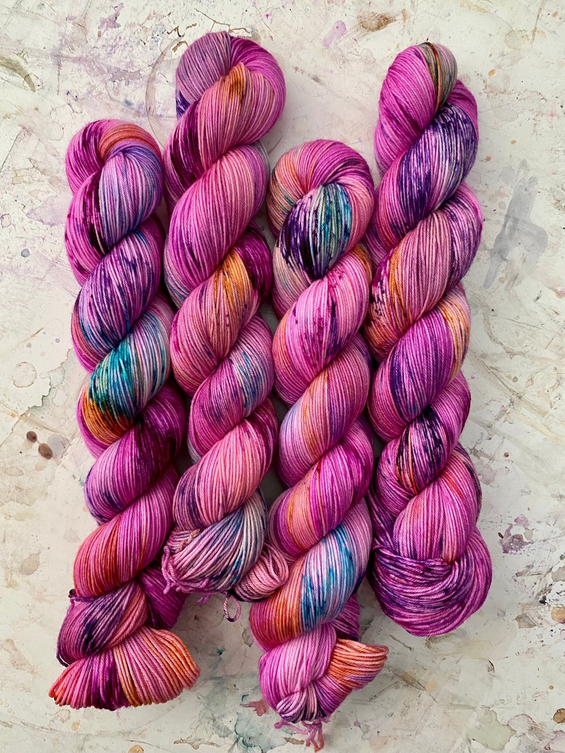 Elegí merino DK simplemente por su increíble suavidad y su torsión apretada para mayor durabilidad. No puedo expresar lo obsesionada que estoy con esta base. Es ideal para cualquier proyecto, desde prendas de contacto con la piel hasta chales y calcetines. En realidad, para todo.