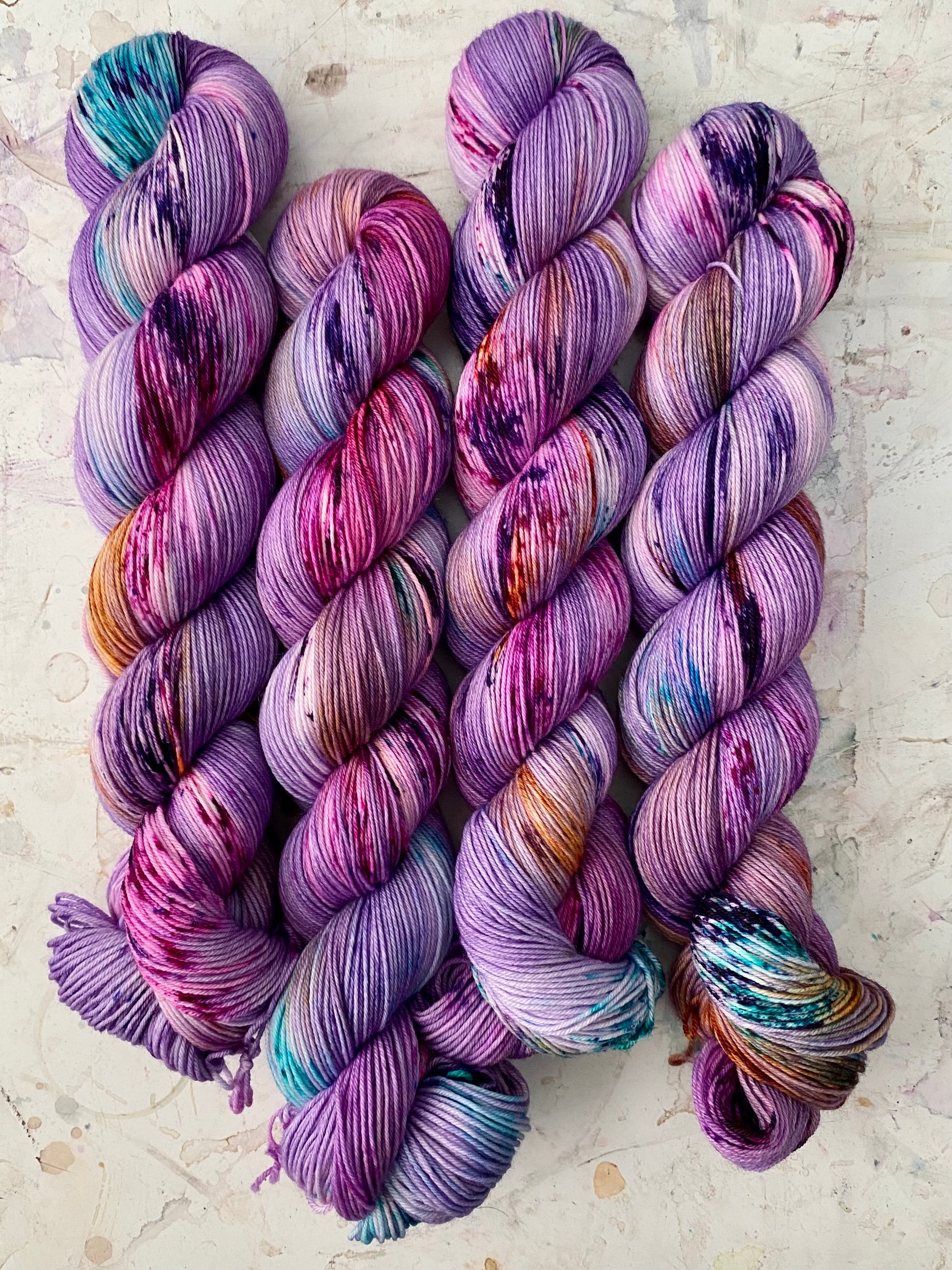 merino dk was chosen simply because of how incredibly soft it is while having a tight twist to maintain durability, I can't even tell you how obsessed I am with this base. Its great for any projects from next to skin wear or shawls, socks. Everything really.